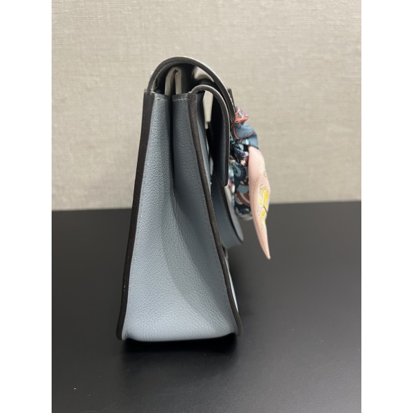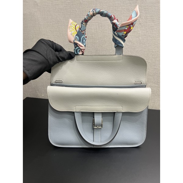 Hermes Halzan 25cm Evercolor J7 Blue Lin