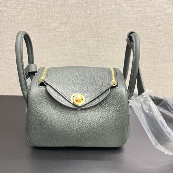Hermes Lindy Mini II Taurillon Clemence Q0 Vert Mangrove