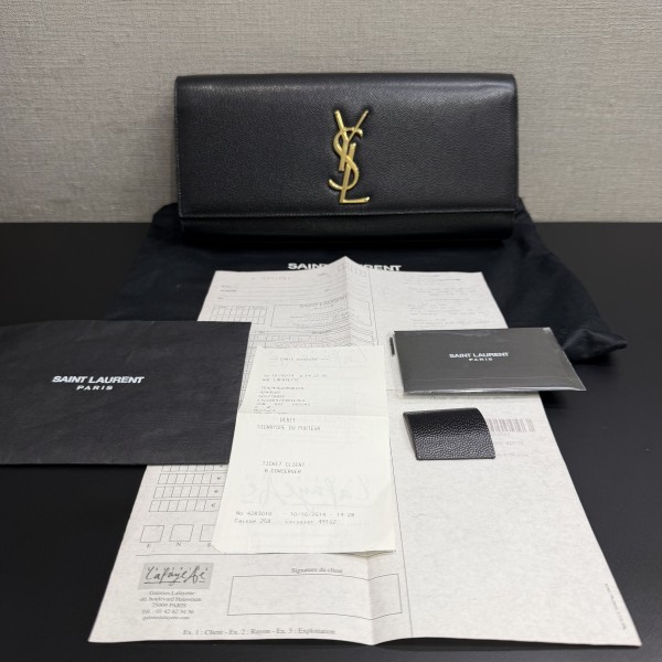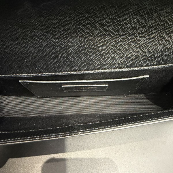 - Iconic interlocking metal "YSL" signature logo on the front flap